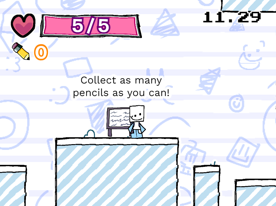 In this game, you collect as many pencils as you can, dodging hazards, grabbing hearts, and getting new highscores!